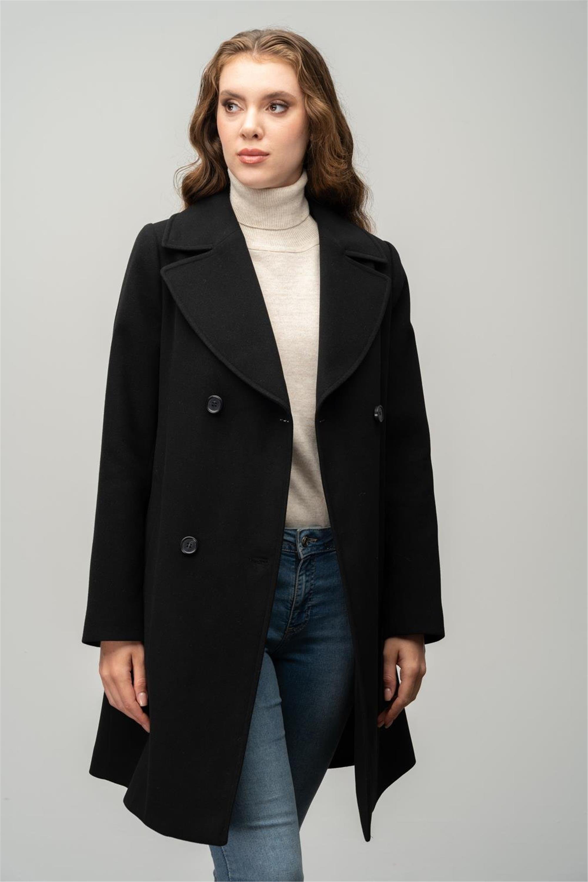 Olcay K26 3058 1 Sıyah Kadın Kruvaze Belden Baglamalı Kaban (09.01.09.70054)