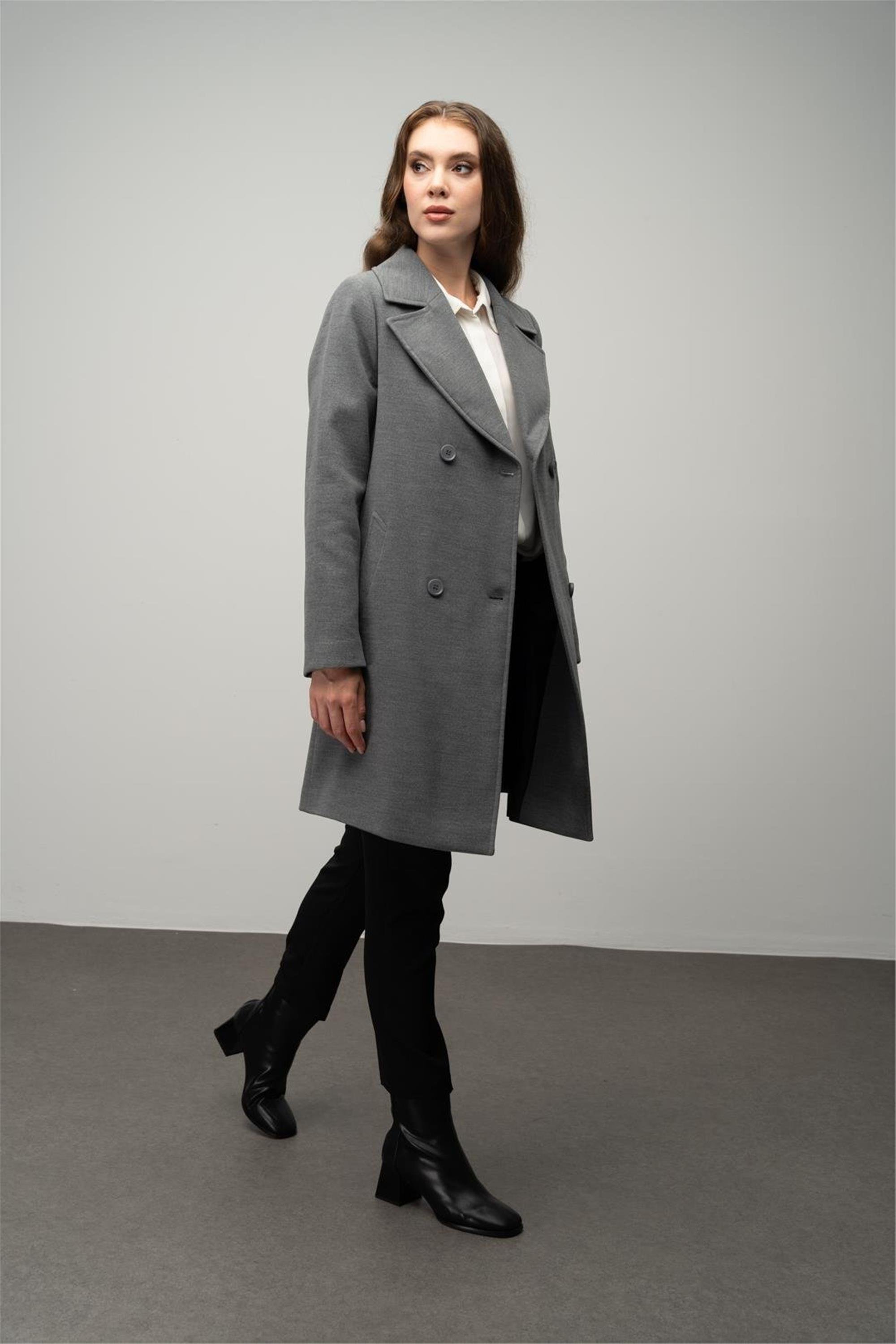 Olcay K26 3058 167 Grı Kadın Kruvaze Belden Baglamalı Kaban