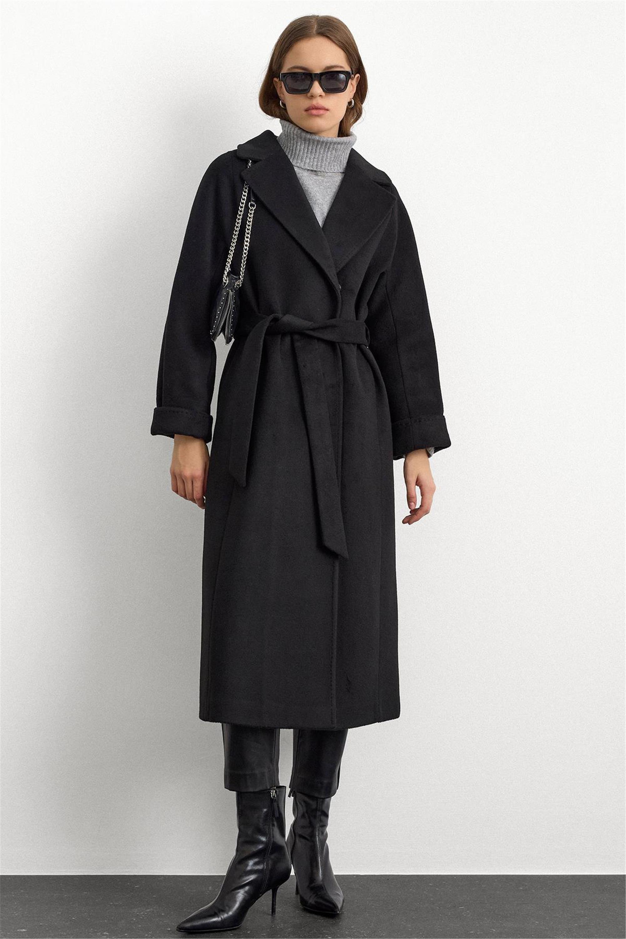 Olcay K26 3108 1001 Sıyah Kadın Punto Dıkıs Detaylı Oversıze Premıum Kaban (09.01.09.70058)