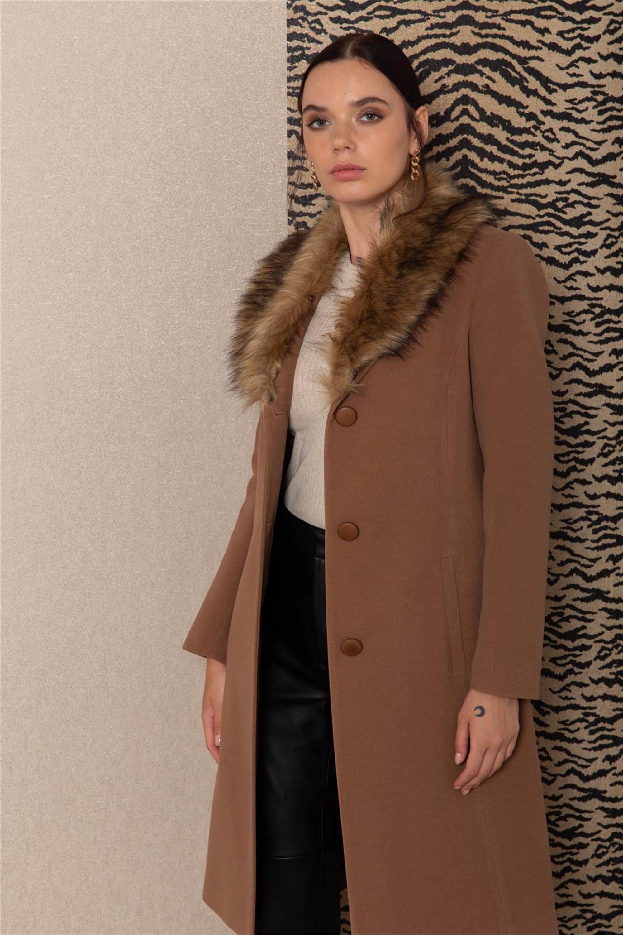 Olcay K26 3620-Y 174 Taba Kadın Erkek Yaka Yakası Seyyar Kurklu Kaban (09.01.09.70077)
