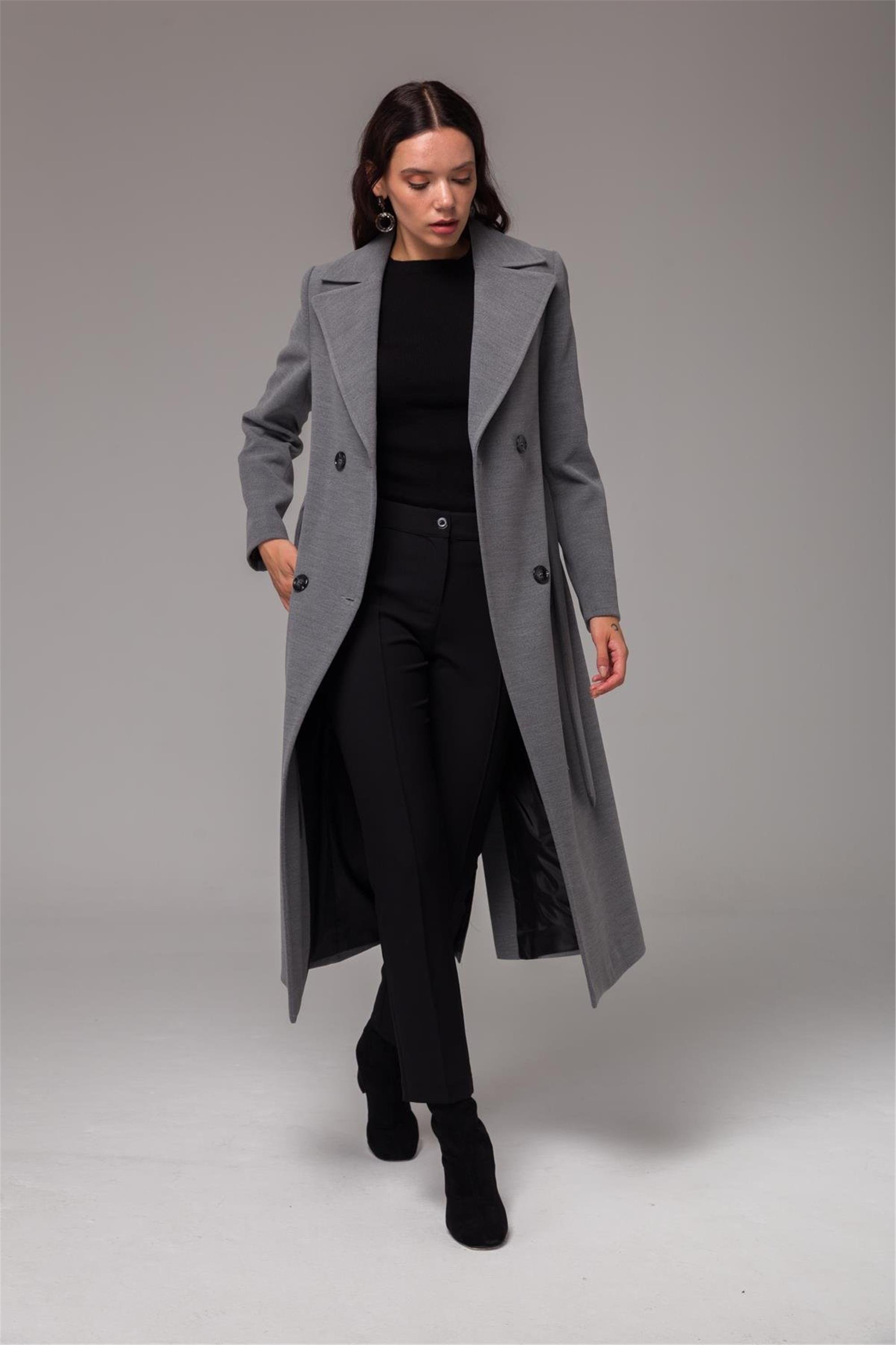 Olcay K26 3754 167 Grı Kadın Kruvaze Belden Baglamalı Ara Boy Kaban