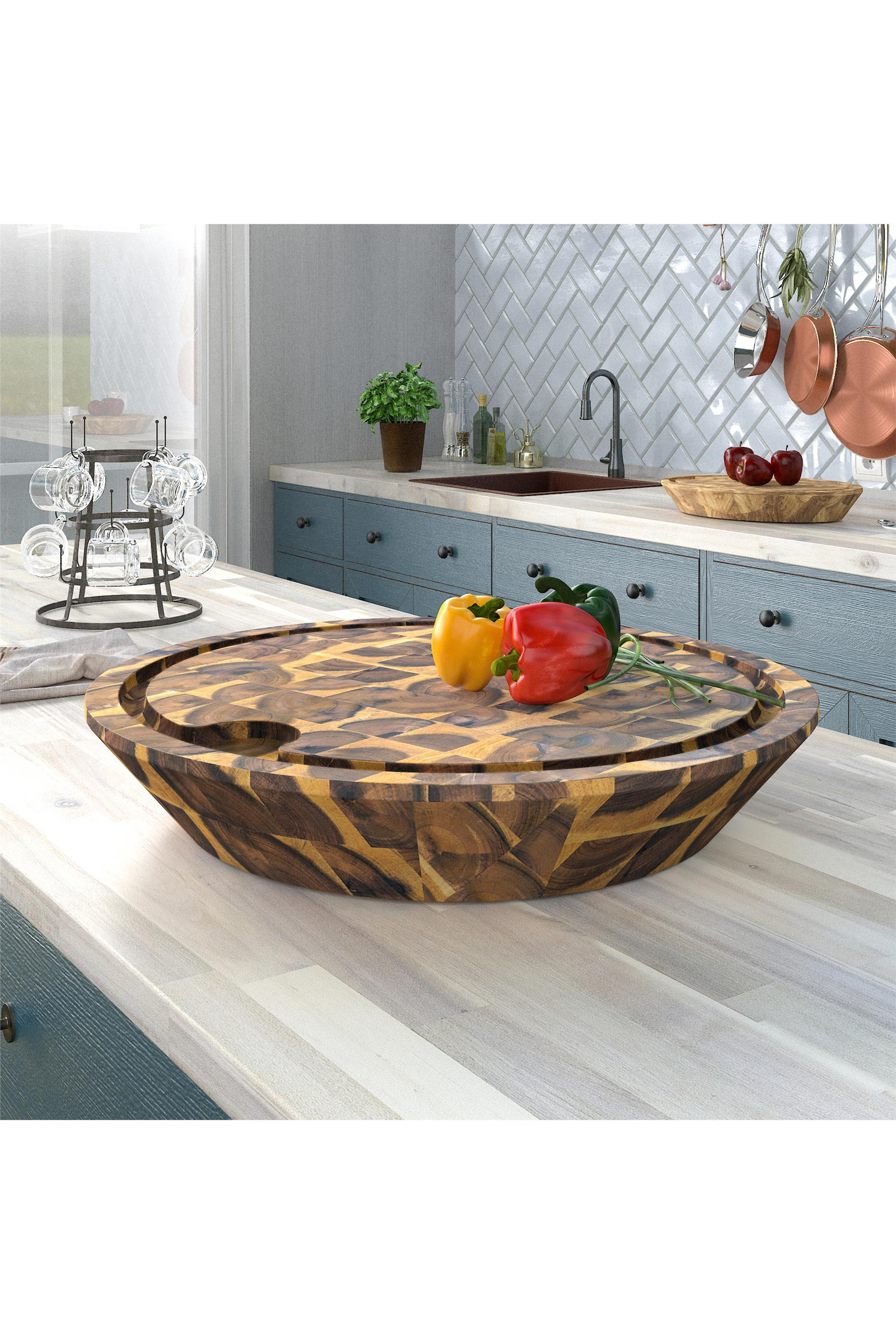 Samurai Interbuild Masif Akasya End Grain Yuvarlak Kesme Tahtası 45 cm Çap 7,8 cm Altın Tik 672223 (ETC.99.02.03.18326)