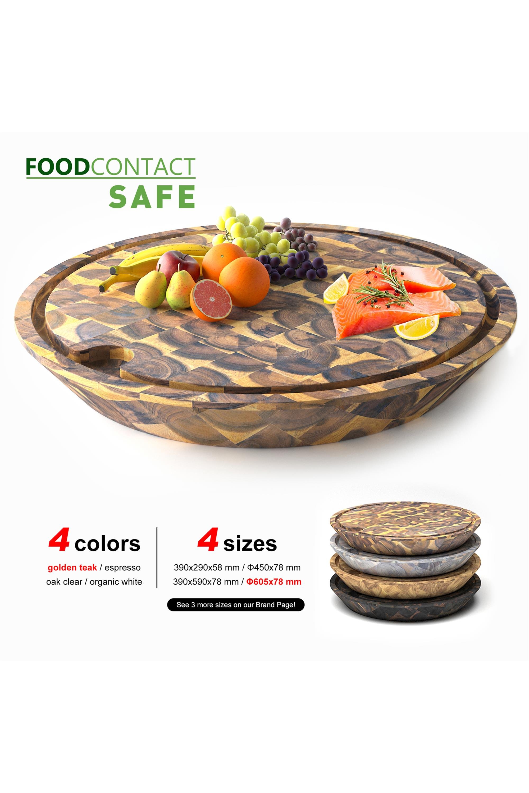 SAMURAI "End Grain" Gıda Temas Onaylı Yüzey korumalı Kesme Tahtası,Masif Akasya Ağaç , 605 mm Çap , 78 mm Kalınlık Altın tik Renk