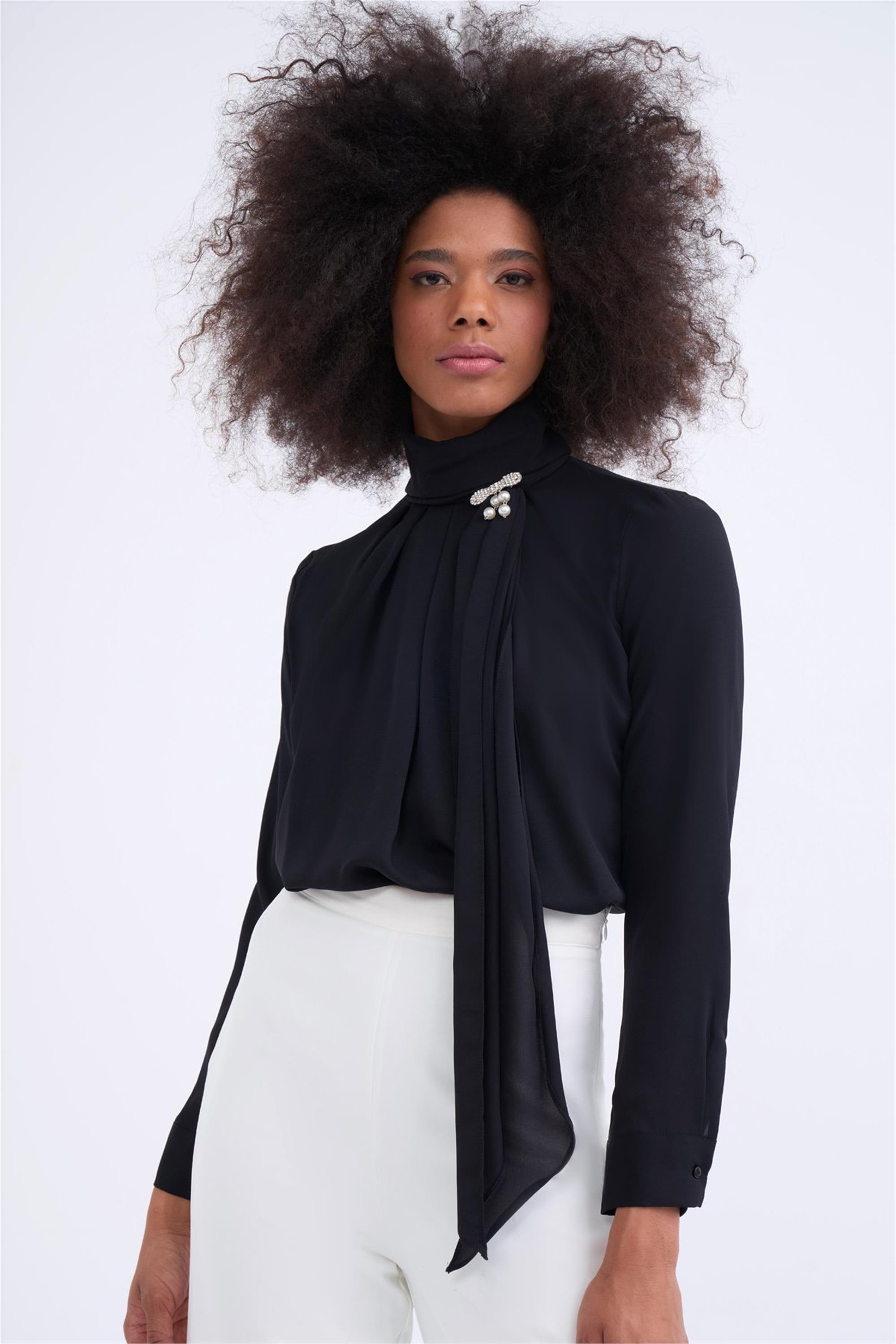 Sateen 1363-1533 Siyah Bros Detaylı Drapelı Bluz