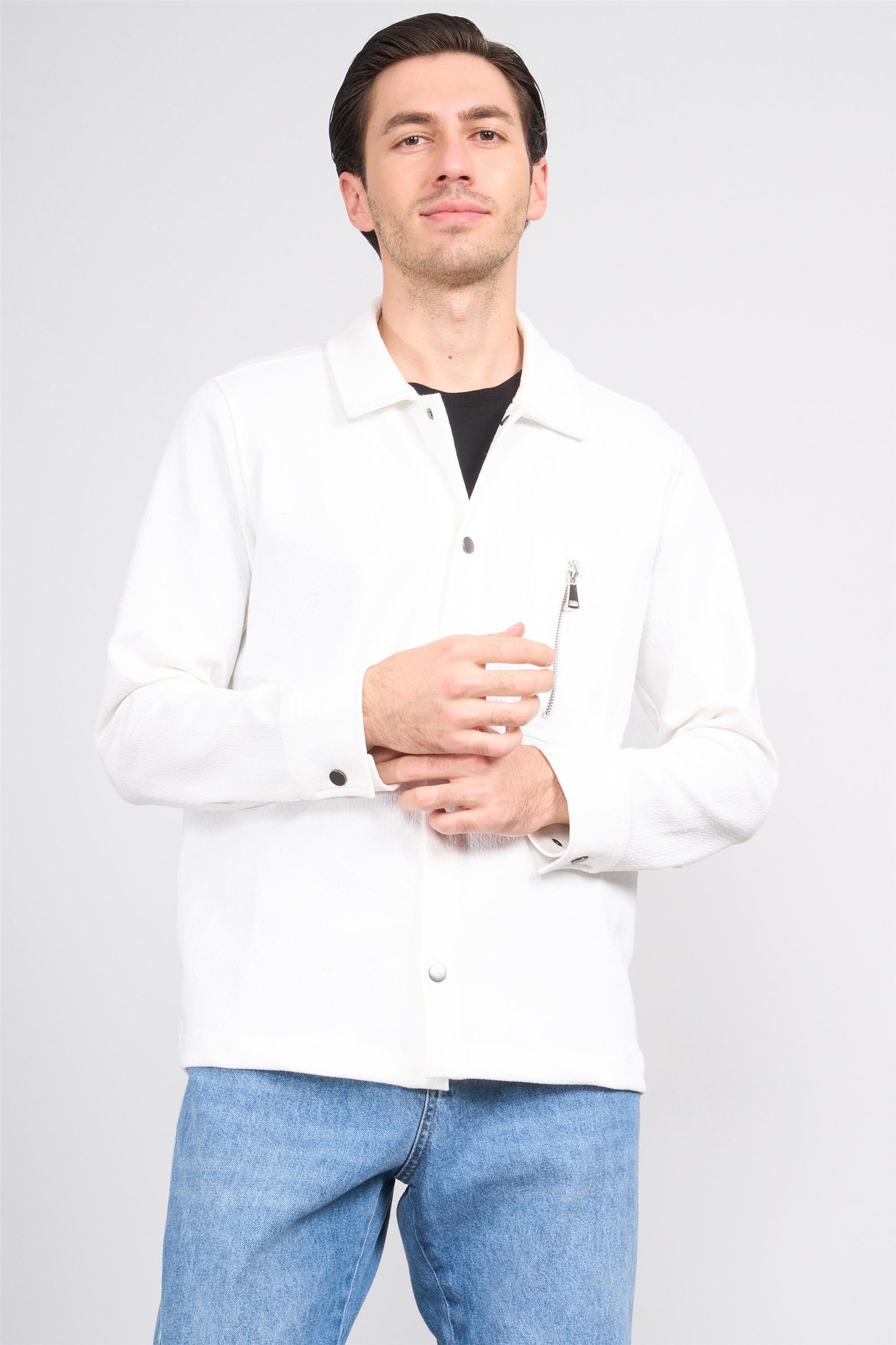 TROY 25332 Beyaz Erkek Metrıx Cep Fermuarlı Gomlek Sweatshırt (08.01.17.20338)