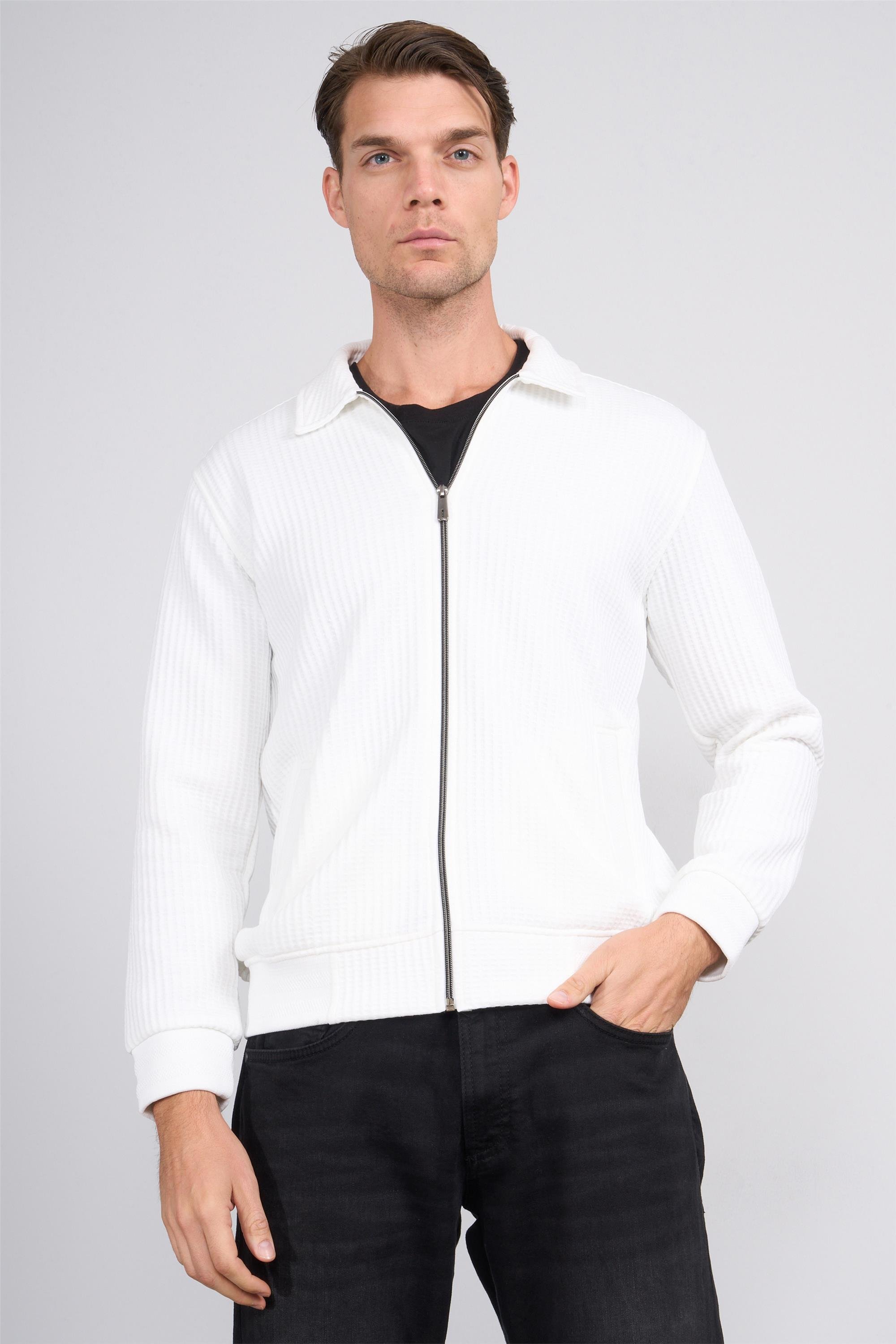 Troy Ekru Erkek Gofre Yakalı Sweatshirt (08.01.17.20511)