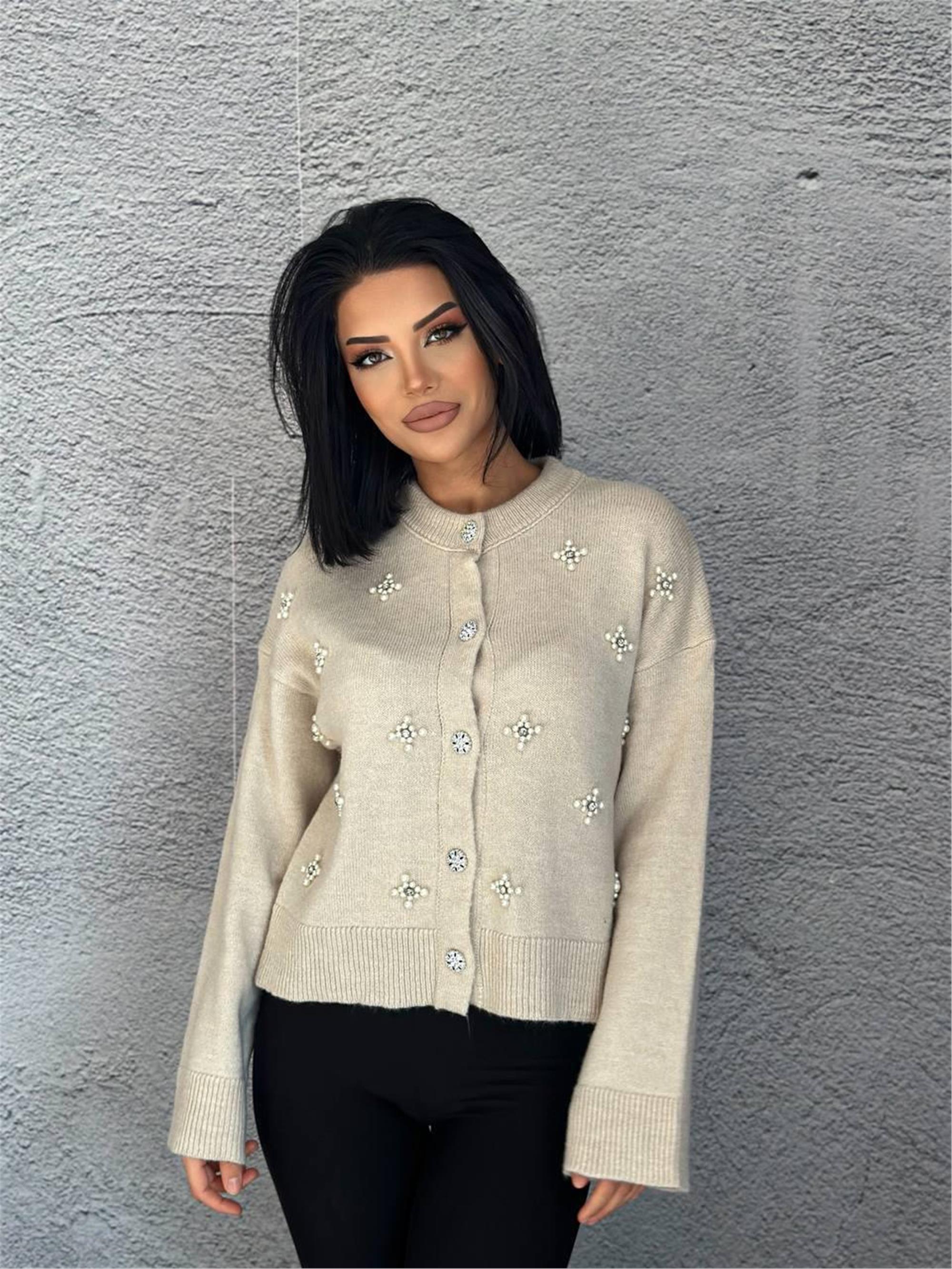 Volumex K26 F-048 Ekru Kadın Tas Islemelı Hırka