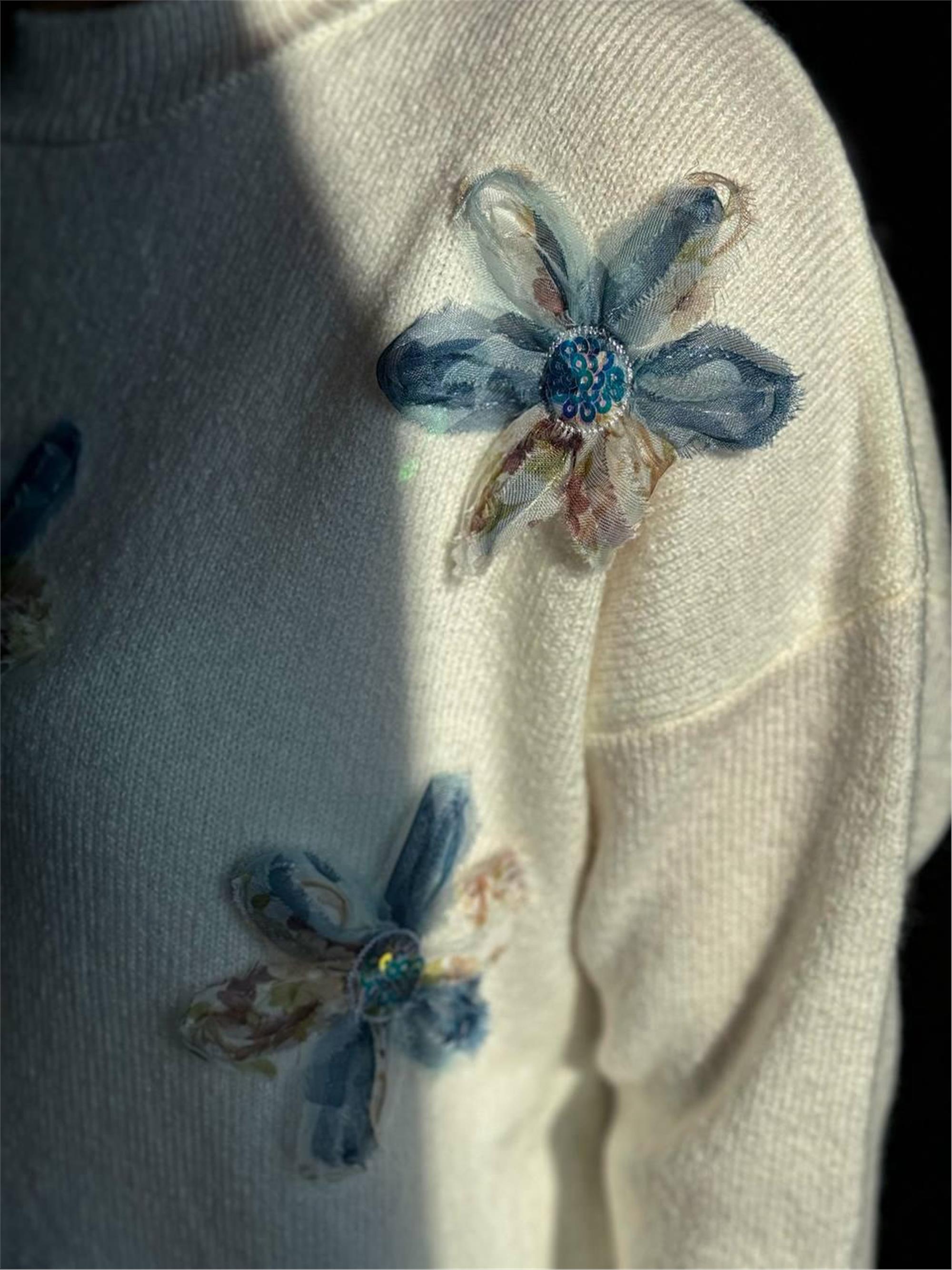 Volumex K26 Fr-507 Beyaz Kadın Cıcek Desenlı Kazak