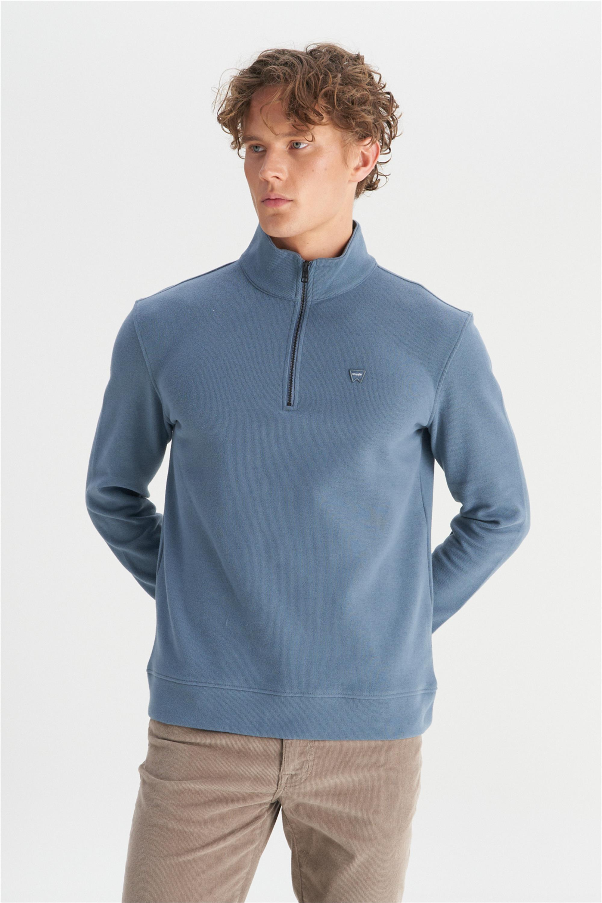 Wrangler W2520532 405 Petrol Erkek Regular Yarım Fermuarlı Dık Yaka Sweatshırt (08.01.17.50759)